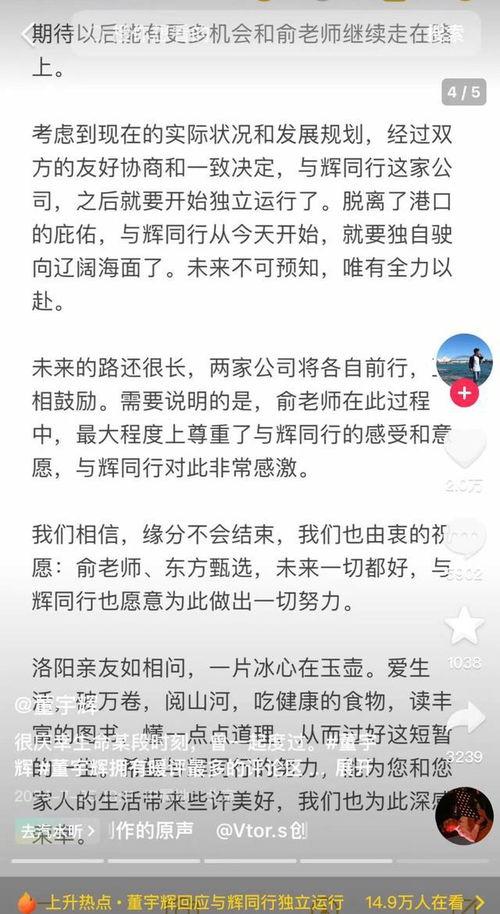 那天,阳光明媚,我正刷着手机,突然一个标题跳入我的眼帘:“俞老师爆料董宇辉视频,内容惊人!”我赶紧点开一看,原来是我们敬爱的俞老师在一次讲座中,意外曝光了一段关于董宇辉老师的视频。这可真是让人意想不到啊!